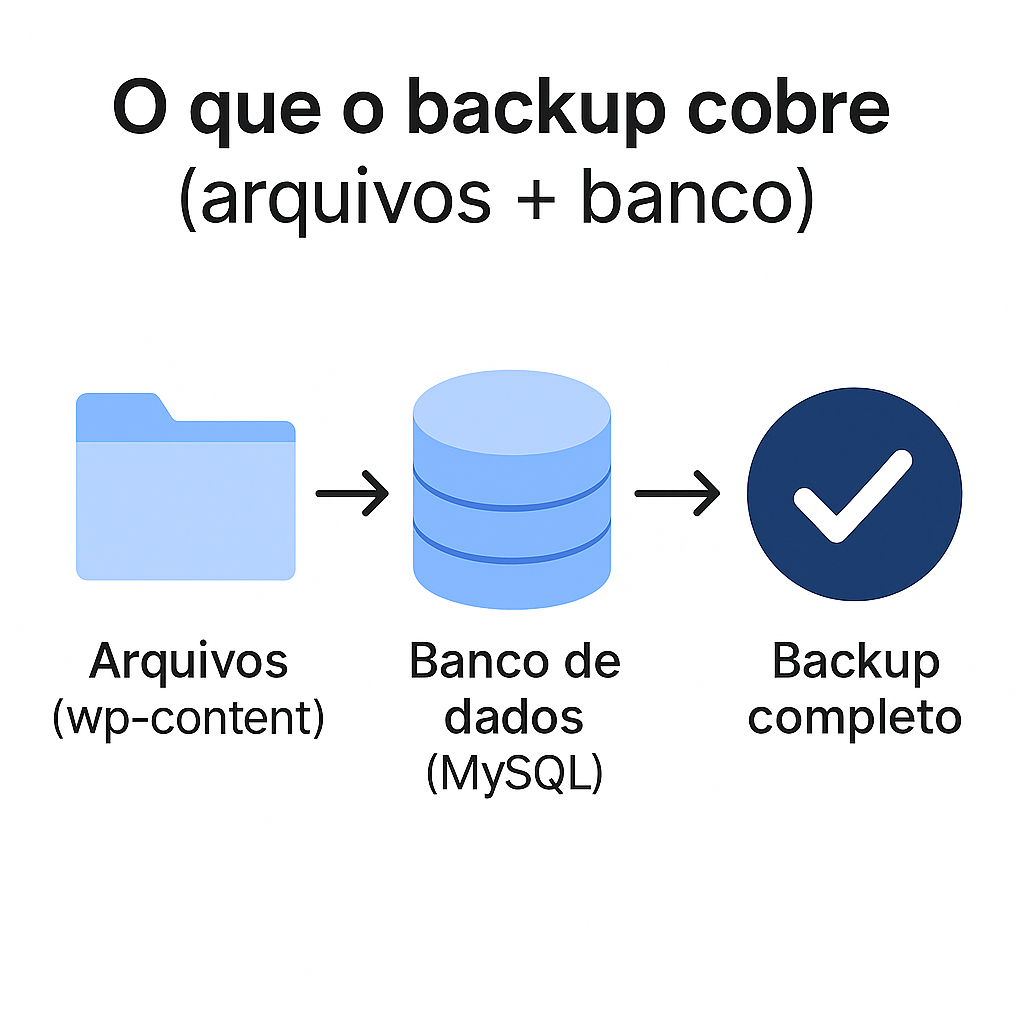 O que o backup cobre (arquivos + banco)