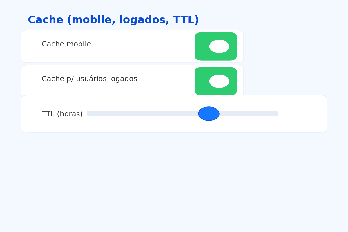 TTL (tempo de vida da cache): 10–24h é um bom ponto de partida. Sites de notícias podem exigir TTL menor.