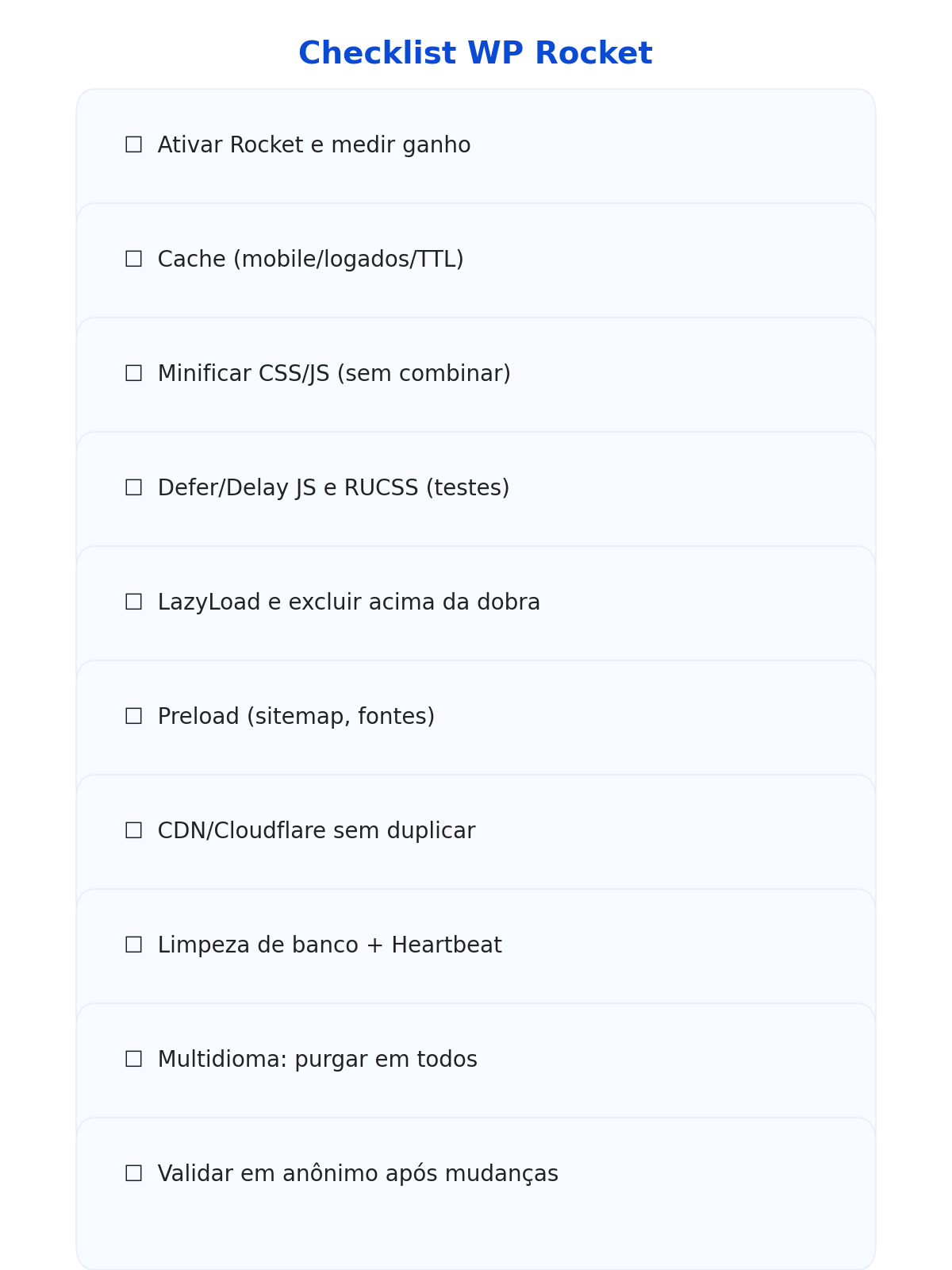 ☑ Ativar WP Rocket e medir ganho inicial